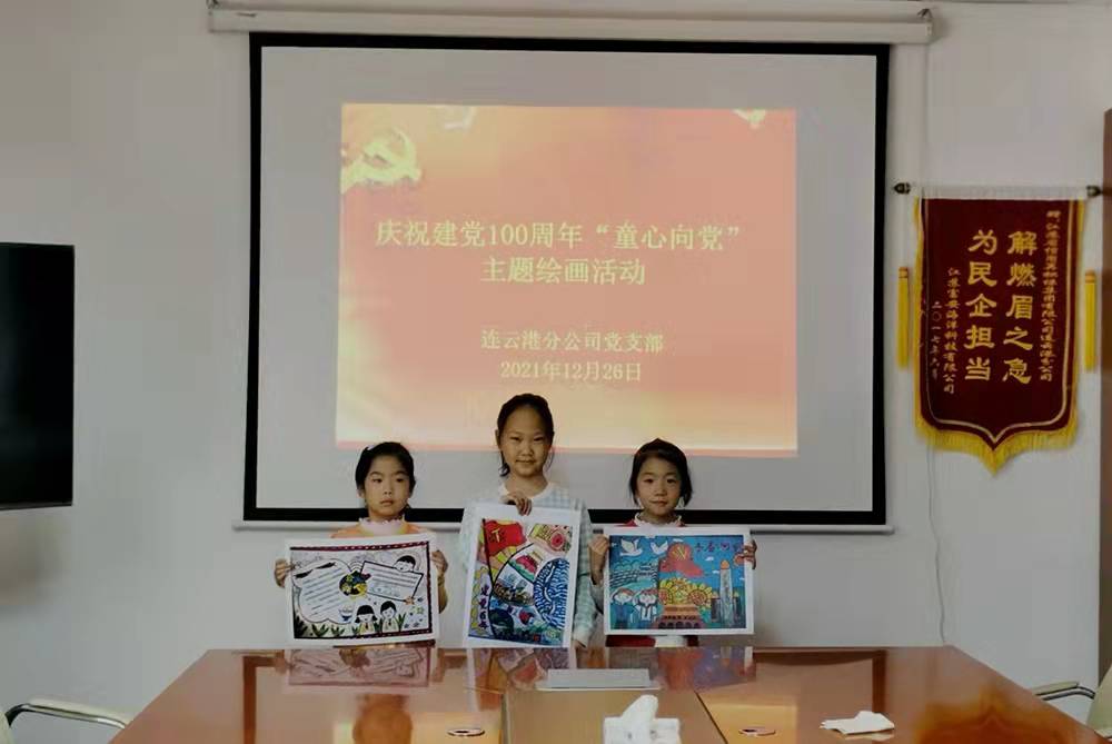 近日,为庆祝建党100周年,展现现代少年儿童热爱党、热爱祖国的情怀,连云港分公司党支部联合工会小组开展“童心向党”主题绘画活动,活动得到了全体员工和孩子们的支持和欢迎。