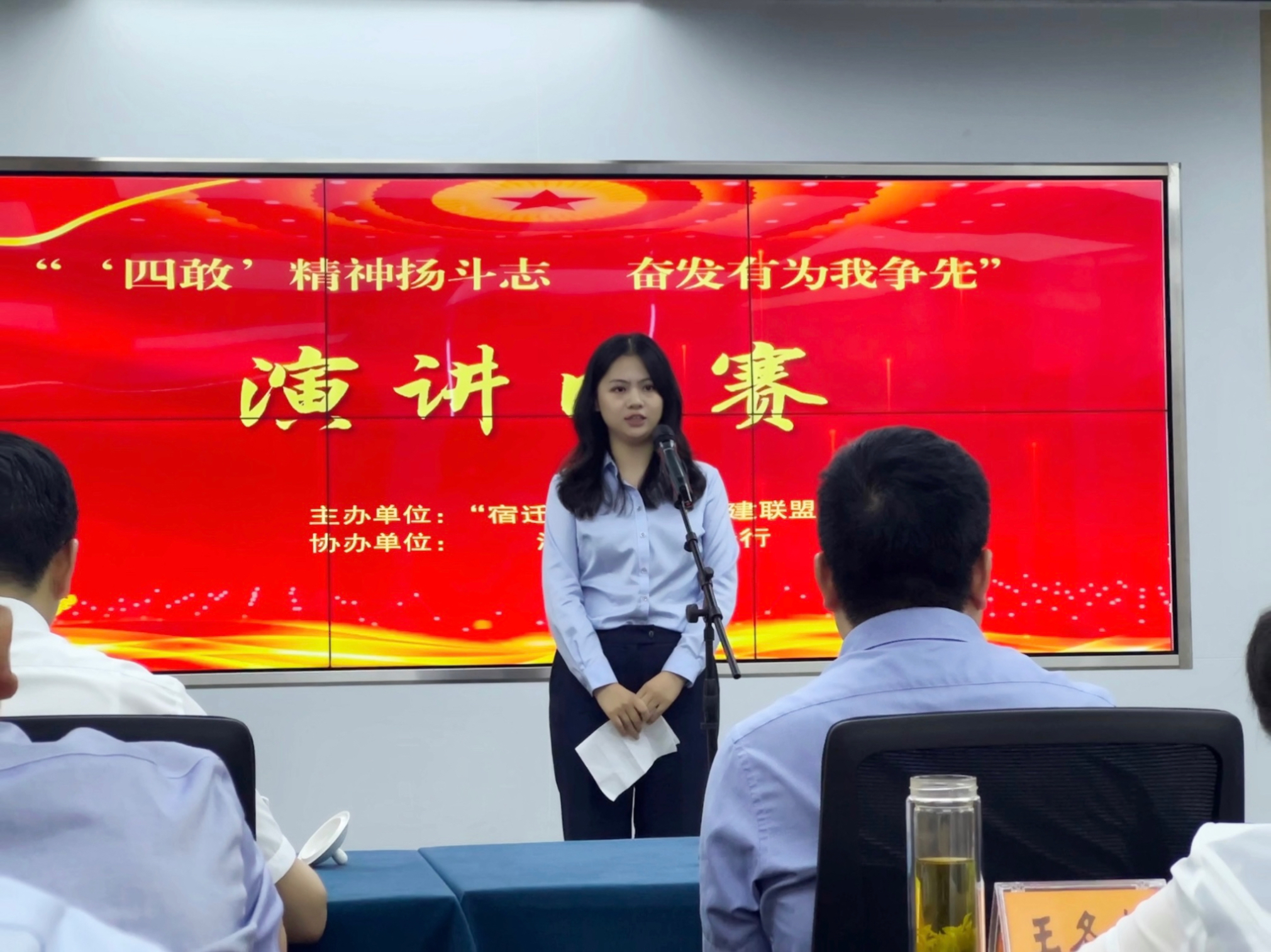 为充分调动宿迁“西楚金润”党建联盟相关单位干部职工的积极性、主动性、创造性,践行“干部敢为、拼担当作为,地方敢闯、拼改革成效,企业敢干、拼发展动能,群众敢首创、拼创新活力”的“四敢”精神,6月21日,宿迁市地方金融监管局组织举办“‘四敢’精神扬斗志,奋发有为我争先”演讲比赛。宿迁市直部分国有地方金融组织、省属地方银行、担保机构、宿迁市地方金融监管局各处室共14人参加了演讲比赛。宿迁分公司积极组织青年干部员工参加比赛并取得佳绩。